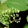 圆锥花序疏散,与叶对生,基部分枝发达,长5-13厘米,初时常被蛛丝状绒毛,以后脱落几无毛;花梗长2-6毫米,无毛;花蕾倒卵圆形,高1.5-30毫米,顶端圆形;萼碟形,高0.2-0.3毫米,几全缘,无毛;花瓣5,呈帽状粘合脱落;雄蕊5,花丝丝状,长0.9-2毫米,花药黄色,卵椭圆形,长0.4-0.6毫米,在雌花内雄蕊显著短而败育;花盘发达,5裂,高0.3-0.5毫米;雌蕊1,子房锥形,花柱明显,基部略粗,柱头微扩大。