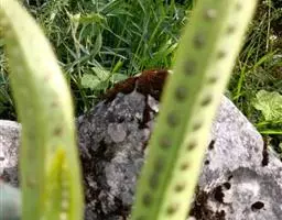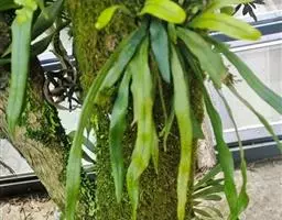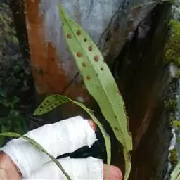 植株高约15-30厘米。根状茎短促横卧,密被卵状披针形鳞片;鳞片深棕色,大部分不透明,仅边缘有1-2行淡棕色透明的细胞。叶簇生或近生;叶柄长1-5厘米,禾秆色;叶片披针形,中部为最宽约1-2厘米,向两端渐变狭,顶端渐尖头,基部渐狭并下延,长 (10) 13-20厘米,干后淡棕色或灰绿色,革质,两面光滑无毛。主脉上下均隆起,小脉不见。孢子囊群圆形,位于主脉与叶缘之间,聚生于叶片上半部,幼时被淡棕色圆形的隔丝覆盖。