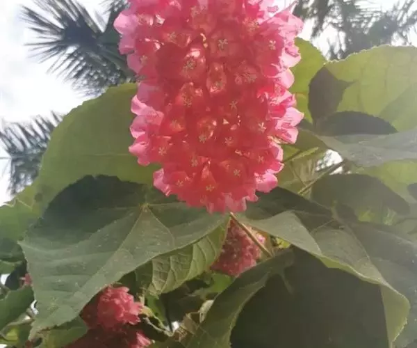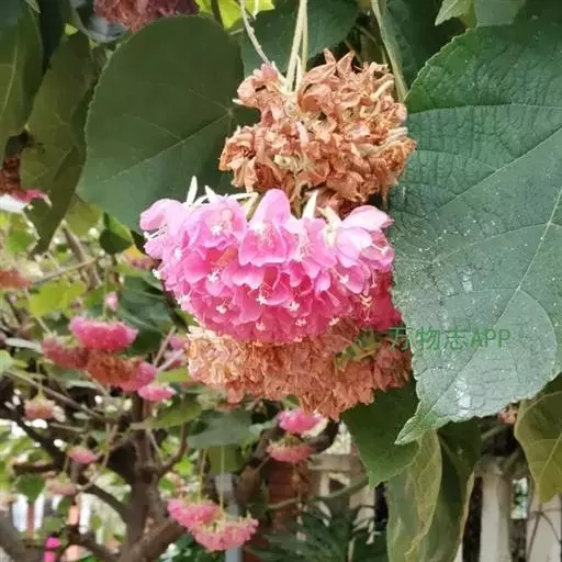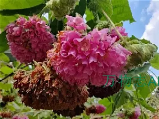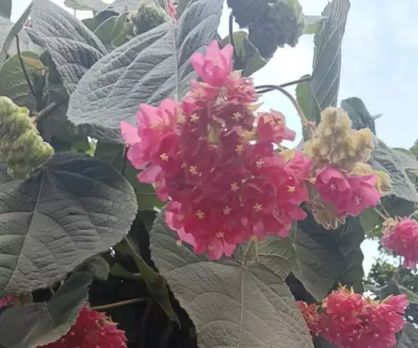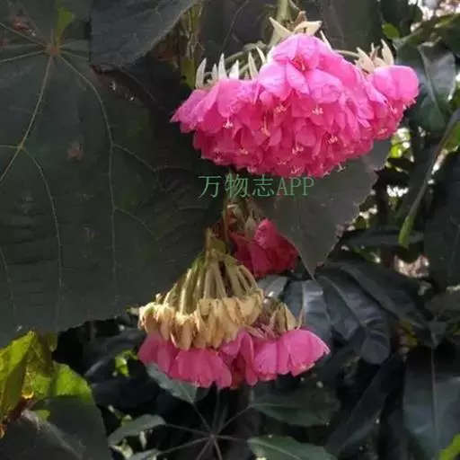 非洲芙蓉 (学名:Dombeya acutangula Cav.)是梧桐科,非洲芙蓉属常绿中型灌木或小乔木,高可达15米。树冠圆形,枝叶密集。树枝棕色,叶面质感粗糙,叶片互生,心形,叶缘顿锯齿,掌状脉,花从叶腋间伸出,伞形花序,冬季开花,12月至翌年3月开花。