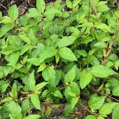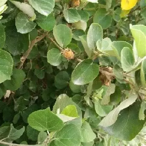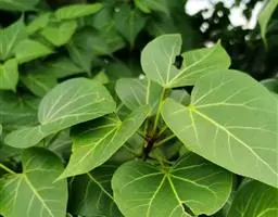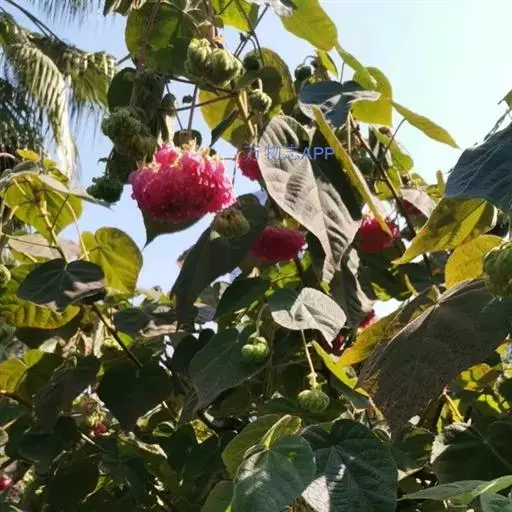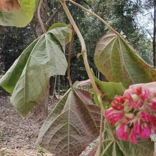叶面质感粗糙,单叶互生,具托叶,心形,叶缘顿锯齿,掌状脉7至9条,枝及叶均被柔毛。