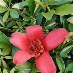 前方为开了一半的花后方为未开的花苞 常绿中型灌木或小乔木,一般有几米高,但最高可达15米。间有明显主干但并不强健,如植株高于7米以上需用支撑物或经修剪。树冠圆形,枝叶密集。树枝棕色。