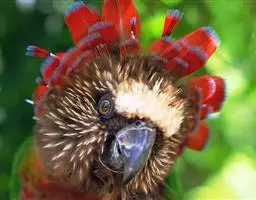 鹰头鹦鹉:鹰头鹦鹉体长35厘米,体重190-277克。额头和顶冠具柔和的白色,眼先深褐色,…