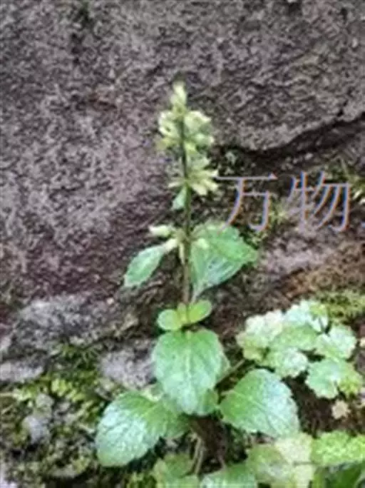 纤细草本。茎多数,自匍匐茎生出,柔弱,上升,不分枝或基部具分枝,高8-30厘米,径约1.5毫米,四菱形,具槽,被倒向的短柔毛。最下部的叶圆卵形,细小,长约1厘米,宽0.8-0.9厘米,先端钝,基部圆形,边缘具疏圆齿,较下部或全部叶均为卵形,较大,长1.2-3.4厘米,宽1-2.4厘米,先端钝,基部圆形或楔形,边缘具疏牙齿或圆齿状锯齿,薄纸质,上面榄绿色,近无毛,下面较淡,脉上被疏短硬毛,侧脉2-3对,与中肋两面微隆起但下面明显呈白绿色,叶柄长0.3-1.8厘米,腹凹背凸,基部常染紫红色,密被短柔毛;上部叶及苞叶卵状披针形,先端锐尖,边缘具锯齿。轮伞花序分离,或密集于茎端成短总状花序,疏花;苞片针状,远较花梗为短;花梗长约1-3毫米,被微柔毛。花萼管状,基部圆形,花时长约3毫米,果时下倾,基部一边膨胀,长约5毫米,13脉,外面沿脉上被短硬毛,其余部分被微柔毛或几无毛,内面喉部被稀疏小疏柔毛,上唇3齿,短,三角形,果时外反,下唇2齿,略长,先端钻状,平伸,齿均被睫毛。花冠白至紫红色,超过花萼长约1/2倍,外面被微柔毛,内面在喉部被微柔毛,冠筒向上渐扩大,冠檐二唇形,上唇直伸,先端微缺,下唇3裂,中裂片较大。雄蕊4,前对能育,与上唇等齐,花药2室,室略叉开。花柱先端略增粗,2浅裂,前裂片扁平,披针形,后裂片消失。花盘平顶。子房无毛。小坚果卵球形,褐色,光滑。花期6-8月,果期8-10月。