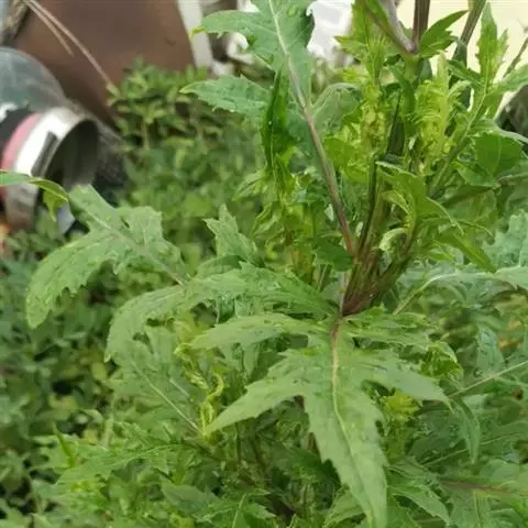 红凤菜 红凤菜,多年生草本,高50-100厘米,全株无毛。茎直立,柔软,基部稍木质,上部有伞房状分枝,干时有条棱。叶具柄或近无柄。叶片倒卵形或倒披针形,长5-10厘米,宽2.5-4厘米,顶端尖或渐尖,基部楔状渐狭成具翅的叶柄,或近无柄而多少扩大,但不形成叶耳。边缘有不规则的波状齿或小尖齿,稀近基部羽状浅裂,侧脉7-9对,弧状上弯,上面绿色,下面干时变紫色,两面无毛;上部和分枝上的叶小,披针形至线状披针形,具短柄或近无柄。