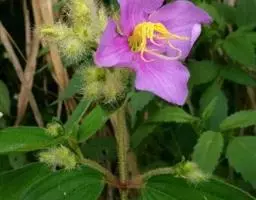 叶对生,椭圆形,两面均被灰白色柔毛。穗状花序有花12-15朵,倒挂下垂。使君子花期夏秋,在广州从5月开始,能一口气开到10到11月之后才慢慢消停,一年有2次以上的盛花期。