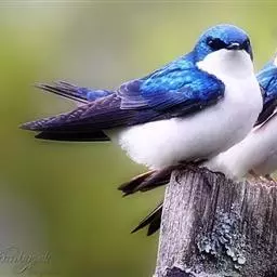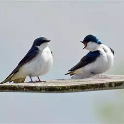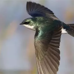 线尾燕,腹部接近纯白色,背部则为深紫色,头部的羽毛是栗色的。