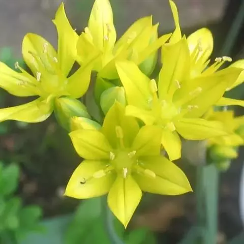 花单生,星状,六裂,绿白色,宽10-16毫米,直径0.7-0.9厘米,散在长的缠绕总状花序上;花梗成拱形,长2-10厘米。花被片游离到基部,5-9(-12)×3.5毫米,白色或绿色到黄绿色,漆皮或反折,长圆形到披针形,边缘向基部回旋,先端亚急性;花柱6,圆柱状,柱头三裂。细丝直立;仅在中度至充分的阳光下才能产生花朵,在这种情况下,每枝植物会开花数十朵花;花有难闻的气味。花期:春天,一年会开花2次。果实椭圆形,先端尖,长1.2-1.6厘米。种子黑色,长方形,有光泽,长5-10毫米。
