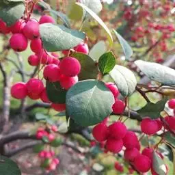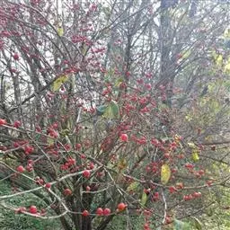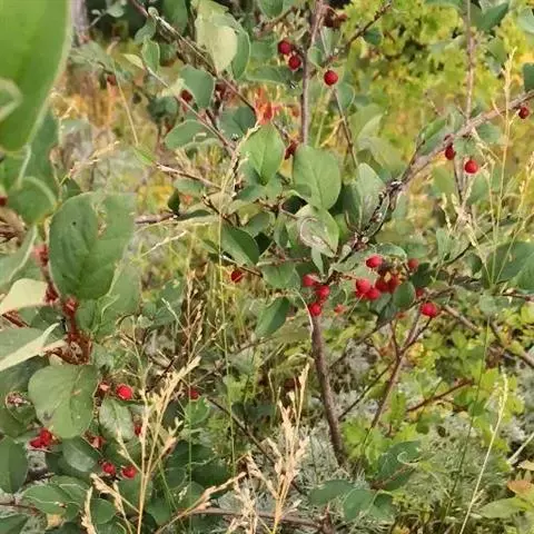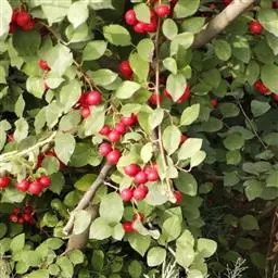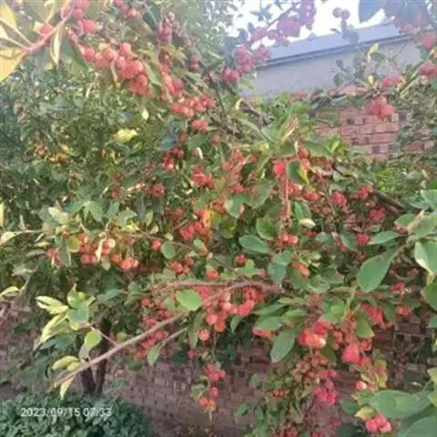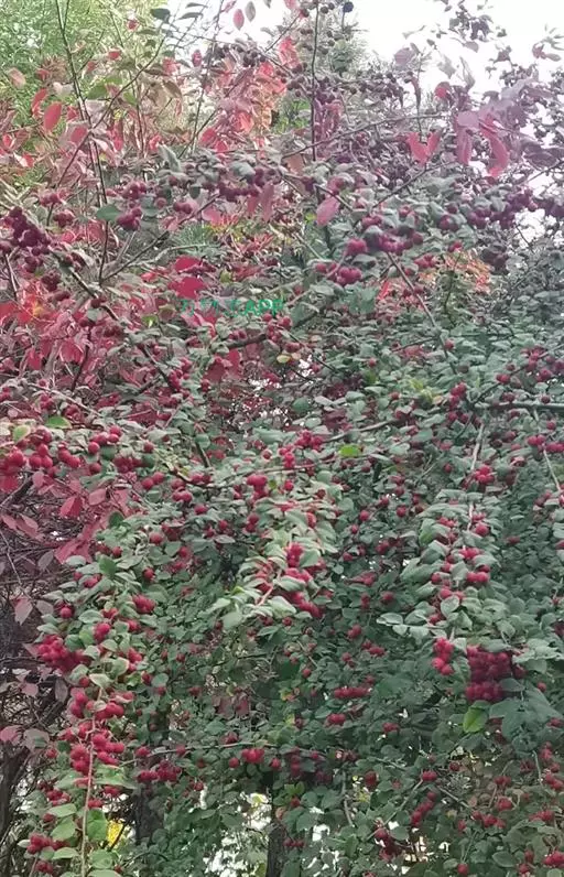 水栒子,初夏白花繁盛,入秋红果累累,像一把巨大的红伞,点缀草坪,在绿叶衬托下,白花红果艳丽可爱,是优美的观花观果灌木。水栒子宜丛植于草坪边缘、园路转角、坡地,是很好的园林绿化树种。
