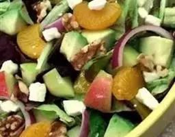 牛油果沙拉是一道菜品,主料是牛油果、苹果、土司,配料为玉米粒、番茄干,制作方法为土司掰小块,…