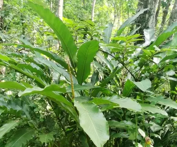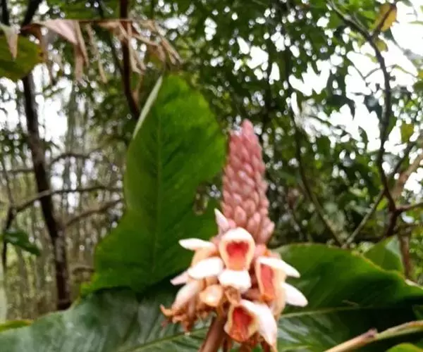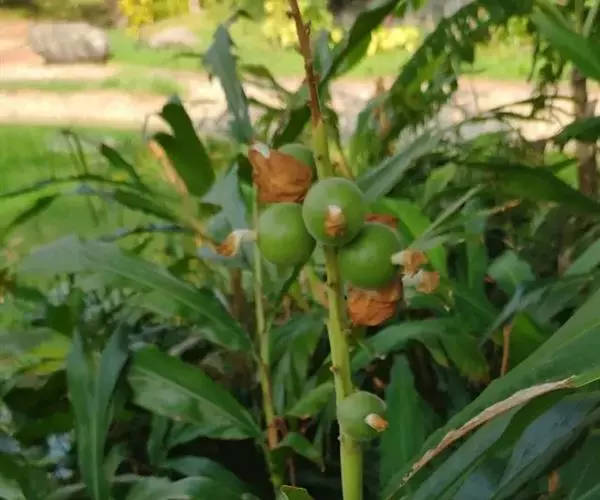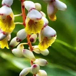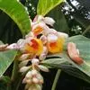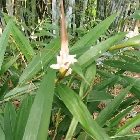 密苞山姜是姜科,山姜属多年生草本植物,株高可达1.5米。叶片椭圆状披针形,顶端渐尖,并具细尾尖,基…