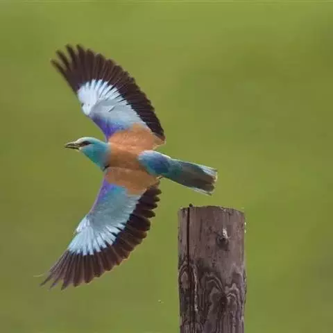 三宝鸟,是佛法僧目佛法僧科三宝鸟属中小型攀禽。成鸟通体为富有光泽的墨蓝绿色,…