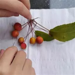 北美海棠 宿存果分为两类,一是秋冬浆化的果实,虽不会自然落果,但多数将成为鸟类的美味;另一类是坚硬的不浆化果实,冬季可在树上宿存至完全干枯,如“当娜”、“红巴伦”、“亚当”、“红珠宝”,第二年海棠再次开花时还结实地挂在树上。