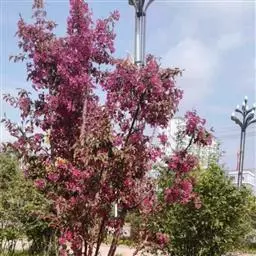 北美垂枝海棠,砧木(用苹果及海棠类)来源广泛,也填补了国内没有红叶垂枝类植物的空白,