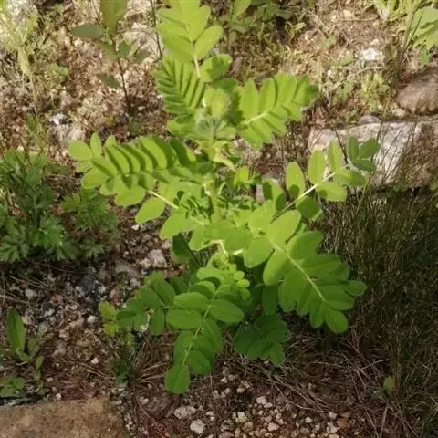 羽状复叶有7-15片小叶,长5-17厘米;叶柄与叶轴等长或稍长;托叶下部与叶柄贴生,长4-7毫米,上部呈三角形至披针形;小叶椭圆形或近圆形,有时披针形,长7-20毫米,宽3-8毫米,先端锐尖、渐尖,有时稍钝,基部宽楔形或近圆形,两面密被伏贴毛。