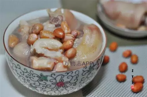 花生性味甘平,入肺脾经,其功能益气、养血、和胃。猪蹄补血通乳,主治产妇产后乳汁缺乏。
