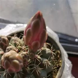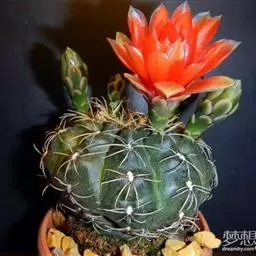 绯花玉 Speg.)是仙人掌科、裸萼球属多肉植物,植株呈扁球形,表皮墨绿色,刺针状,…