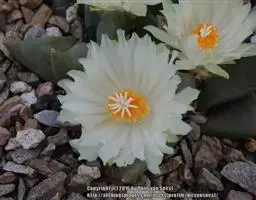 江守玉为仙人掌科强刺球属,植株扁圆形至球形,后成圆柱状,体色灰绿,刺座上附生白色绒毛,花橙黄色,漏…