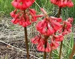 稀有花卉,又叫美国樱草,美国一茎十二花。叶基生,叶片较大,花葶细长高挺,花淡粉色,花瓣向上翻折,花像一颗颗坠落的流星般动感。