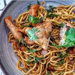 将麦其琳放在面片中间,两边的面片折过来,将其包裹。将两头捏紧,这样,麦其琳就包好在面片里了。