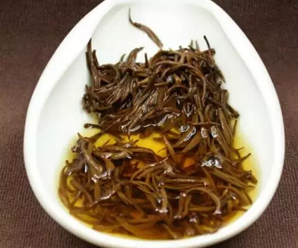 此茶冲泡后其汤色呈琥珀金骏眉色,具淡而甜的蜜香,品之甘甜润滑,叶底芽头挺拔、呈鲜活的古铜色。