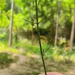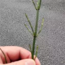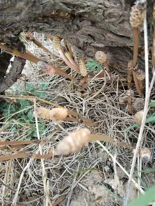 问荆(学名:Equisetum arvense L.):是木贼纲、木贼科、问荆属中小型蕨类植物。根茎黑棕色,地上枝当年枯萎。枝二型。高可达35厘米,黄棕色,鞘筒栗棕色或淡黄色,栗棕色,狭三角形,孢子散后能育枝枯萎。不育枝后萌发,鞘齿三角形,宿存。侧枝柔软纤细,扁平状,孢子囊穗圆柱形,顶端钝,成熟时柄伸长。