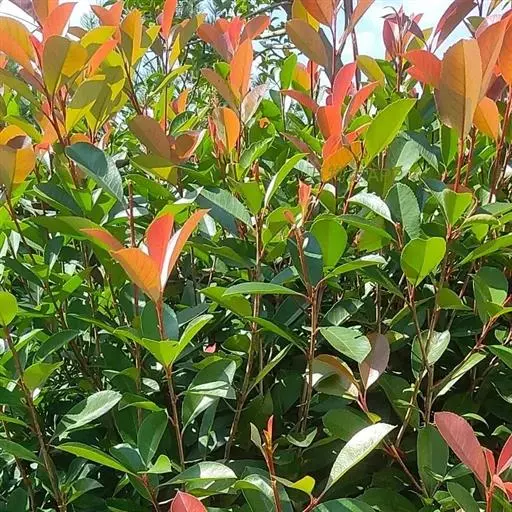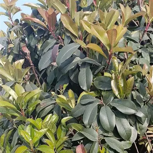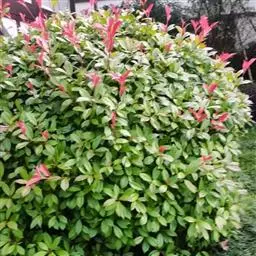 是蔷薇科石楠属杂交种的统称,为常绿小乔木或多枝丛生灌木,单叶轮生,叶披针形到长披针形,新梢及嫩叶鲜红色,老叶革质,叶表深绿具光泽,叶背绿色,光滑无毛。顶生伞房圆锥花序,小花白色,花期4月上旬至5月上旬。红色梨果,夏末成熟,可持续挂果到翌年春。 园林中常用的有红罗宾'RED Robin'和红唇'RED Tip'两个品种,其中红罗宾的叶色更加持久鲜艳,观赏性更强。红叶石楠主要产于亚洲东部和东南部、北美洲的亚热带和温带地区。 另外还有火艳`Camelvy'、鲁宾斯'Rubens'、 强健'Rubusta'等品种。