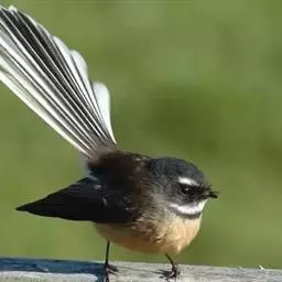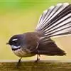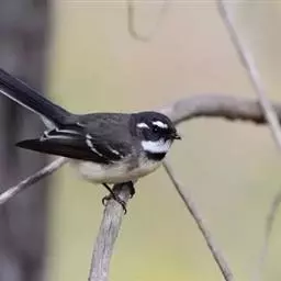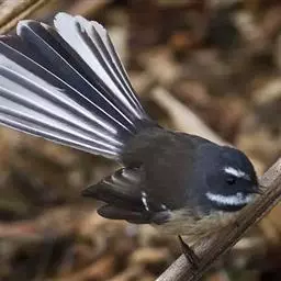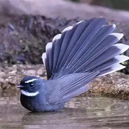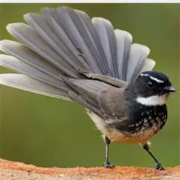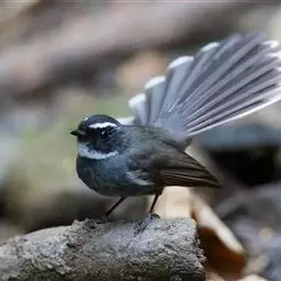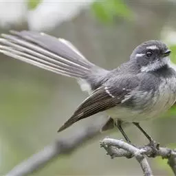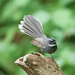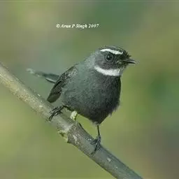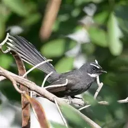 白眉扇尾鹟:体长17厘米,是一种中等体型的灰色扇尾鹟。色彩独特。宽宽的眉纹及前额白色,尾有白色宽边…