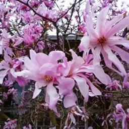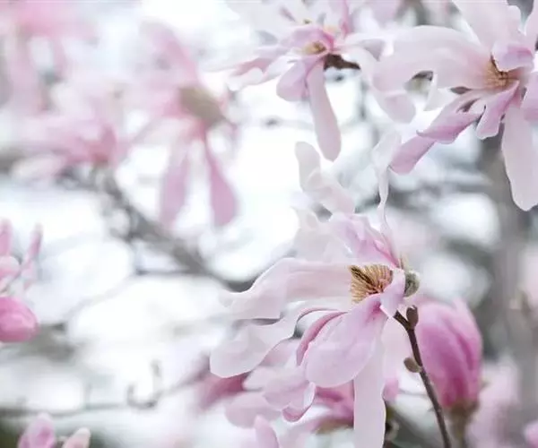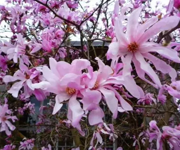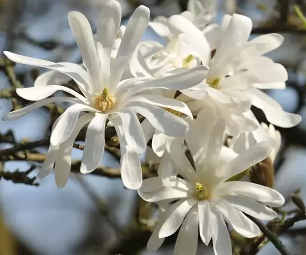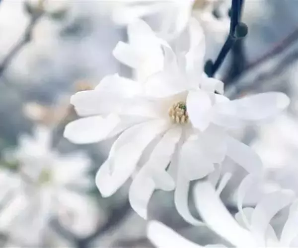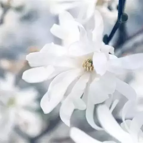 星花玉兰,原产日本岐阜县,分布区狭小,久经栽培,引种至欧美,有多种栽培品系。性耐风寒及耐碱性土壤。我国青岛、南京有栽培。为美丽的庭园观赏树种。落叶小乔木,枝繁密,灌木状;树皮灰褐色, 当年生小枝绿色,密被白色绢状毛,二年生枝褐色;冬芽密被平伏长柔毛。