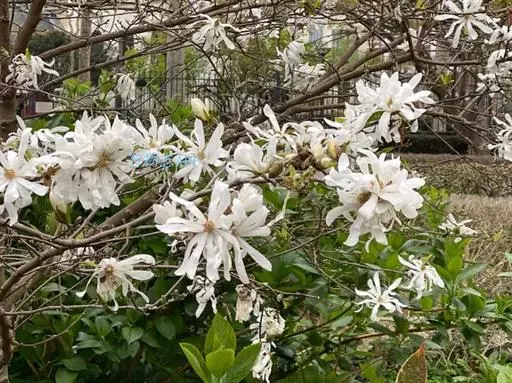 龙王塘樱花园中的星花玉兰树,是1926年从日本东京移栽此地。星花玉兰开花最早,花开最美,堪称“早春之秀”。从花蕾初绽到花瓣落尽,历时一个月。远远望去灿烂绚丽,近景观赏清香醉人。