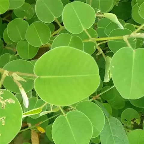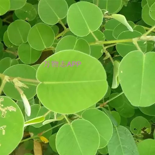 叶通常具单小叶,有时具3小叶;叶柄长1-2厘米,密被贴伏或开展的丝状毛;托叶披针形,长7-8毫米,宽1.5-2毫米,先端尖,基部偏斜,被毛;小叶厚纸质至近革质,圆形或近圆形至宽倒卵形,长与宽均2-4.5厘米,侧生小叶如存在,则较顶生小叶小,先端圆或微凹,基部圆或心形,上面无毛,下面密被贴伏、白色丝状毛,全缘,侧脉每边8-10条;小托叶钻形或狭三角形,长2.5-5毫米,疏生柔毛;小叶柄长5-8毫米,密被贴伏或开展的丝状毛。
