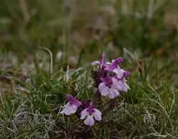 总状花序短,顶生或腋生,长1-3厘米,总花梗密被绢毛;花密生,每2朵生于节上;花梗长2-3毫米,无毛或疏生开展的柔毛,果时下弯;苞片密集,覆瓦状排列,宽卵形,长3-4毫米,被毛;花萼长约3.5毫米,密被小钩状毛和混生丝状毛,萼筒长约1.5毫米,顶端4裂,裂片近等长,上部裂片又2裂;花冠紫红色,长约4毫米,旗瓣倒卵形或近圆形,具瓣柄,翼瓣倒卵形,亦具短瓣柄,龙骨瓣较翼瓣长,极弯曲,有长瓣柄;雄蕊二体,长4-6毫米;雌蕊长约6毫米,子房线形,被毛。