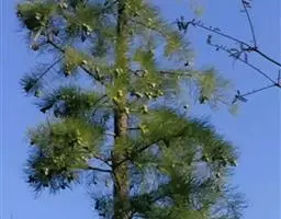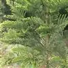 常绿乔木,一般盆栽为幼树,高在2米以下。 澳洲杉 树冠尖塔形,深绿色,树冠表皮常横裂或呈条片状脱落;新表皮具古铜色光泽。茎干直立,侧枝轮生,水平伸展。小枝二列互生,水平延伸或略下垂。叶有二型:幼树或侧枝上的叶为钻形,向上弯曲,长约12厘米,排列疏松,光绿色;大树或老枝上的叶卵形或三角状卵形,长约6厘米,排列紧密。球果近圆形。