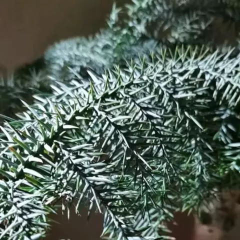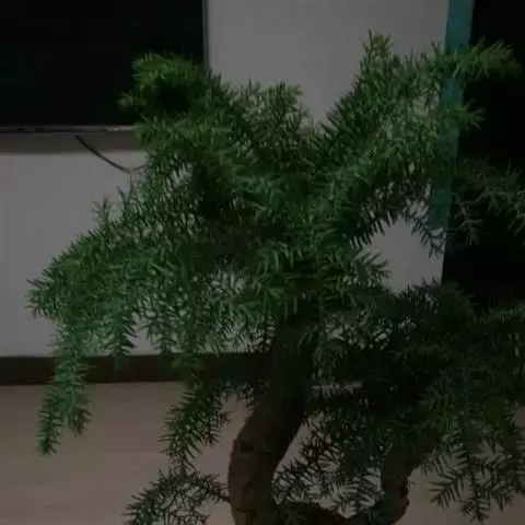 澳洲杉,常绿乔木,一般盆栽为幼树,高在2米以下。喜温暖、潮湿的环境,树冠尖塔形,深绿色。茎干直立,侧枝轮生,水平伸展。小枝二列互生,水平延伸或略下垂。叶有二型。球果近圆形。