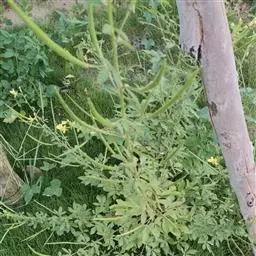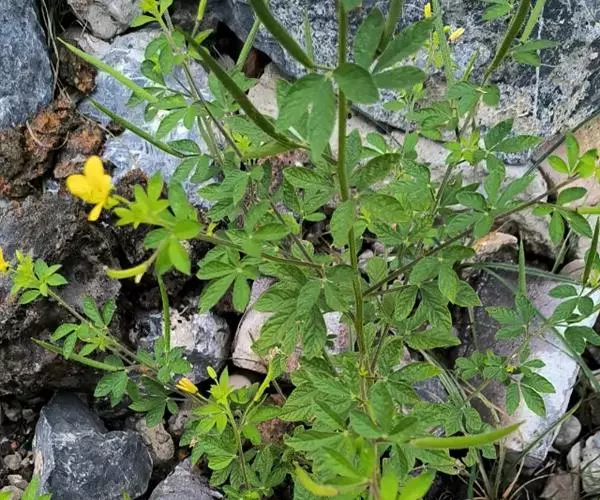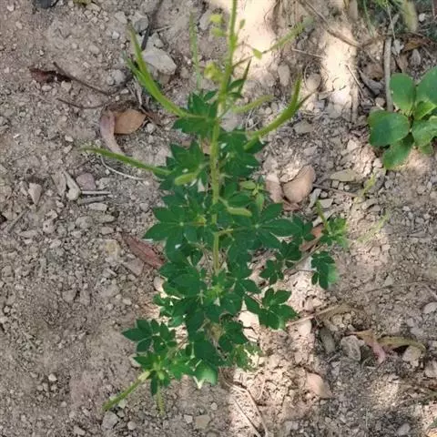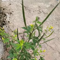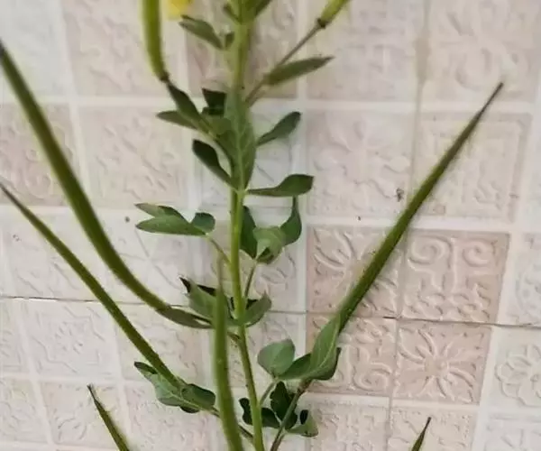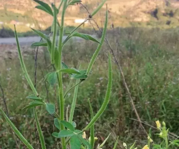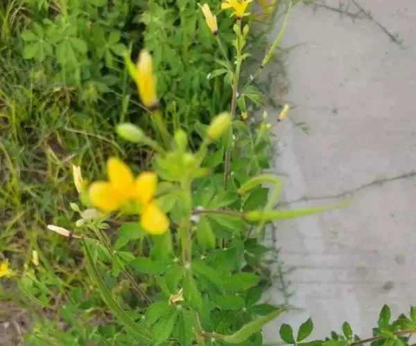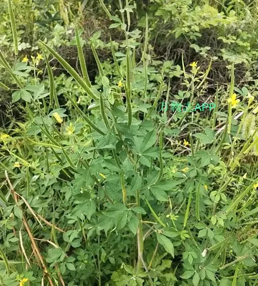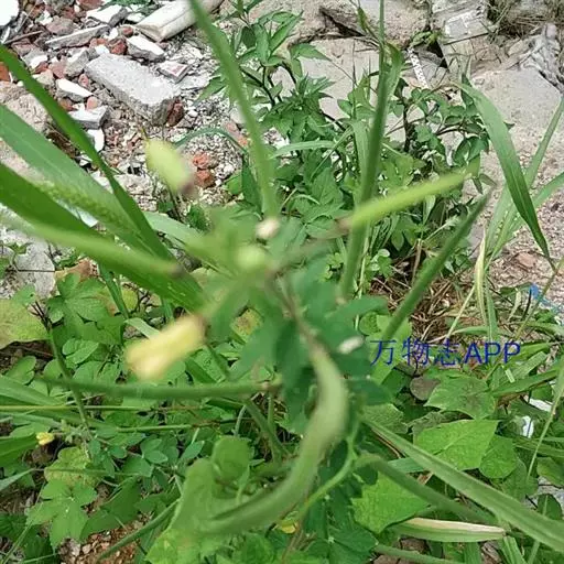 一年生直立草本,高0.3—1米,茎基部常木质化,干后绿黄色,有纵细槽纹,全株密被粘质腺毛与淡黄色柔毛,无刺,有恶臭气味。叶为具3—5(-7)小叶的掌状复叶,小叶薄草质,近无柄,倒披针状椭圆形,中央小叶最大,长1-5厘米,宽5—15毫米,侧生小叶依次减小,全缘但边缘有腺纤毛,观脉3-7对;叶柄长(1-)2—4(-6)厘米,无托叶。花单生于茎上部逐渐变小与简化的叶腋内,但近顶部则成总状或散房状花序,花梗纤细,长1-2厘米;萼片分离,狭椭圆形至倒披针状椭圆形,长6-7毫米,宽1—3毫米,近膜质,有细条纹,内面无毛,背面及边缘有粘质腺毛;花瓣淡黄色或桔黄色,无毛,有数条明显的纵行脉,倒卵形或匙形,长7-12毫米,宽3—5毫米,基部楔形至多少有爪,顶端圆形;雄蕊10-22(-30),花丝比花瓣短,花期时不露出花冠外,花约背着,长约2毫米;子房无柄,圆柱形,长约8毫米,除花柱与柱头外密被腺毛,花期时亦不外露,1室,侧膜胎座2,胚珠多数,子房顶部变狭而伸长,花柱长2—6毫米。柱头头状。果直立,圆柱形,劲直或稍镰弯,密被腺毛,基部宽阔无柄,顶端渐狭成喙,长6—9厘米,中部直径约3毫米,成熟后果瓣自顶端向下开裂,果瓣宿存,表面有多条多少呈同心弯曲纵向平行凸起的稜与凹陷的槽,两条胎座框特别凸起,宿在的花柱长约5毫米;种子黑褐色,直径1—1.5毫米,表面约有30条横向平行皱纹。无明显花果期,通常3月出苗,7月果熟。