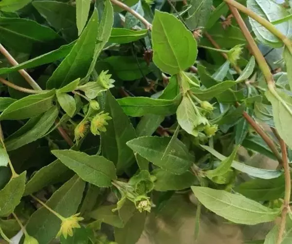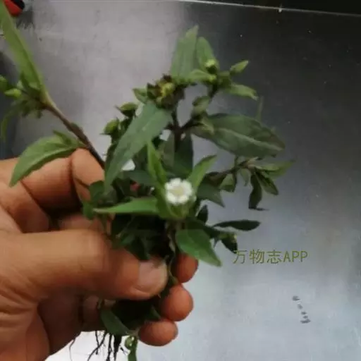 菊科,一年生草本植物。直立,具匍匐茎;叶对生,披针形;头状花序,腋生或顶生,花白色;瘦果黑色。全国广布种。常见于田梗,沟溪边湿地。全草药用,能收敛、止血、补肝肾之功效。即莲子草也,旧不载所出州郡,但云生下湿地,今处处有之,南方尤多。此有二种:一种叶似柳而光泽,茎似马齿苋,高一、二尺许,花细而白,其实若小莲房。 鳢肠