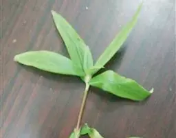 叶片狭披针形,长6.5-13厘米,宽1.5-3厘米,先端渐狭,边缘具钝齿。