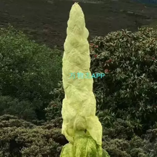 塔黄和竹子一样,是单次结实的多年生草本植物,即经过5-7年的营养生长后才开花结果,之后便死去,一生只开一次花。开花以前的塔黄并不起眼,乍一看去,很像一棵大白菜。但是到了开花这一年,它会长出高达1.5-2米的花序,由下向上逐渐变细;花序外面一层一层包裹着大型半透明的奶黄色苞片,其实这是变态的叶。这时候,它成了喜马拉雅高山地区“身材”最高的草本植物,远远望去,好似一座金碧辉煌的宝塔,格外醒目,“塔黄”一名便由此而来。