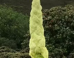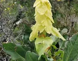 会长出一根高达近两米高的“花柱”;这根“花柱”就像一把太阳伞,撑起一层又一叠的半透明而且乳黄色苞片(其实这是一种变幻姿态的叶子)。此时,塔黄摇身一变,成了高山上最“魁梧”的小草,远远望去,好似一座金碧辉煌的宝塔。这其实是塔黄的“高招”,这些半透明的“瓦片”(苞片)层层叠叠,仿佛一座尖顶的温室,能够积聚热量、提升温度(这就是“温室植物”的由来),经过测量,在晴朗的正午,“室内”温度比寒冷的“户外”甚至高出10℃以上,而且它还能遮风挡雨,这真是太好了!不仅花朵在里面可以热情地自由绽放,昆虫们也有了温暖的“居室”,这些带翅膀的小“居民”们还顺便帮塔黄完成了传播花粉的“大业”。