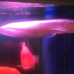 黑骨舌鱼还有一种变异体,白金个体,是相当珍贵的个体,其特别之处为身体色彩随着龙鱼长大而变成白色,三鳍带有蓝黑色金属光泽。