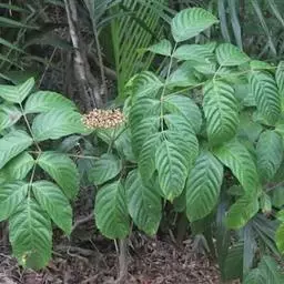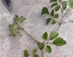 叶为2-4回羽状复叶,小叶卵椭圆形至长圆披针形,长5-15厘米,宽2.5-8厘米,顶端渐尖,基部阔楔形,稀近圆形,边缘有急尖锯齿,上面绿色,下面浅绿色,两面无毛;侧脉6-11对,网脉在叶片下面明显,但不突出;叶柄长6-13厘米,中央小叶柄长1.5-4厘米,侧生小叶柄长0.5-1.5厘米,无毛。