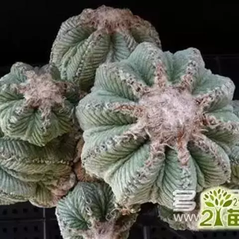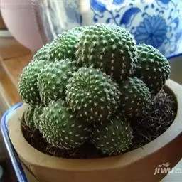 江守玉为仙人掌科强刺球属,植株扁圆形至球形,后成圆柱状,体色灰绿,刺座上附生白色绒毛,花橙黄色,漏…