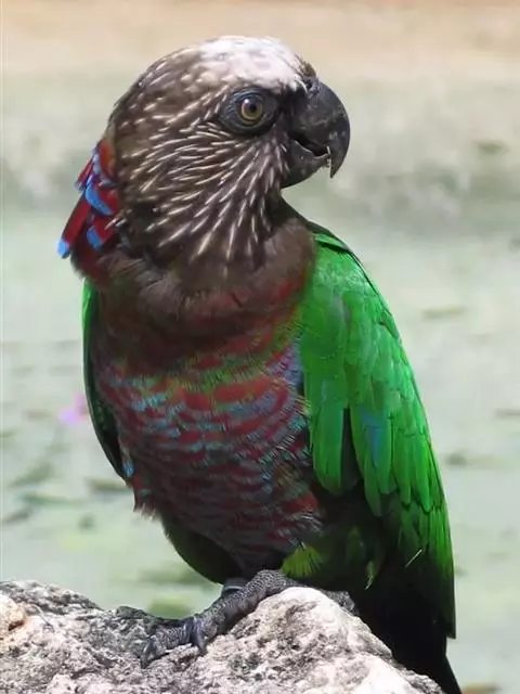 鹰头鹦鹉:鹰头鹦鹉体长35厘米,体重190-277克。额头和顶冠具柔和的白色,眼先深褐色,…