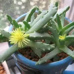 照波,番杏科多肉植物、此种生长较快,栽培容易,细长的浓绿色叶3厘米左右,开黄色花。…