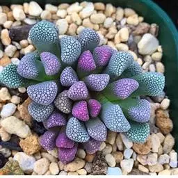 五十铃玉是番杏科窗玉属的多年生肉质植物,别名有“棒叶花”“婴儿脚趾”。植株高5厘米,叶片淡绿色,肉质,…