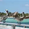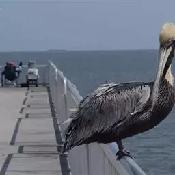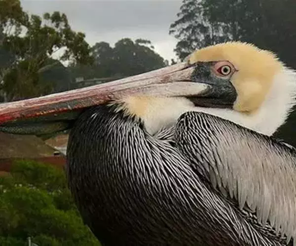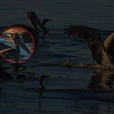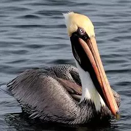 褐鹈鹕:是鹈鹕家族中体型最小的成员。体型粗大,体重6.5-9千克。嘴形宽大直长,上嘴尖端朝下弯曲,…