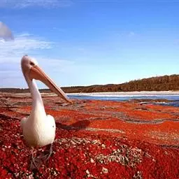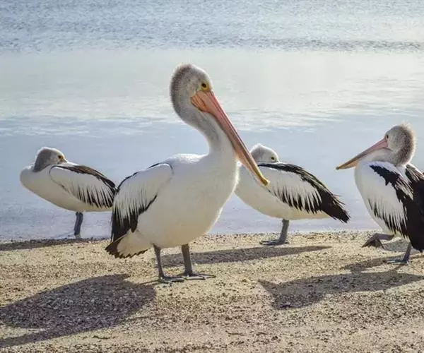 澳大利亚鹈鹕是一种大型涉禽,体重达13千克。生活于沿海及河川、湖泊等处。飞行力强而悠逸,常群飞群栖,…