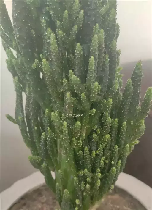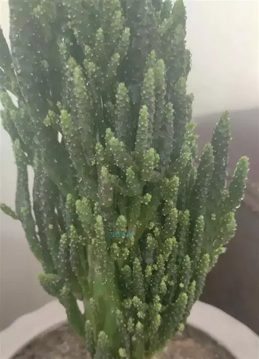 姬珊瑚在栽培的过程中,还可以培育出一些掌形茎片状的植株,而且满身长有像金琥一般金光灿烂的刺,十分壮丽。