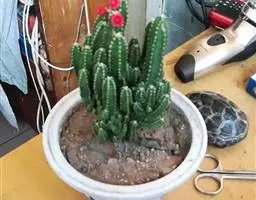 首先,准备一个较大的盆(粗泥盆为宜),配好土,并保持有一点湿度。选出一些较壮实的茎段(一节即可)植入盆中,再喷上水,使盆土表面粘合,然后直接入在太阳底下暴晒。不能常浇水,盆土保持干旱,这是迫使长出掌状茎片的方法。过一段时间,就会有一些茎干上面开始长出金黄色的小刺来,随后新生出来的茎干就会开始稍微变扁,变宽,出现掌状的趋向。如果从一开始就始终优质较湿润的话,那么新生的茎就不会有出现掌声状的趋向了,而是照原来植株的样子长。