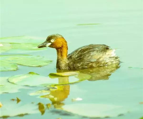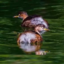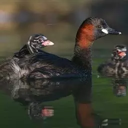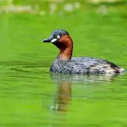 小鸊鷉(学名:Tachybaptus ruficollis):是一种潜鸟。体长25-29厘米,翼展 40-45厘米,体重100-200克,寿命13年。枕部具黑褐色羽冠;成鸟上颈部具黑褐色杂棕色的皱领;上体黑褐,下体白色。