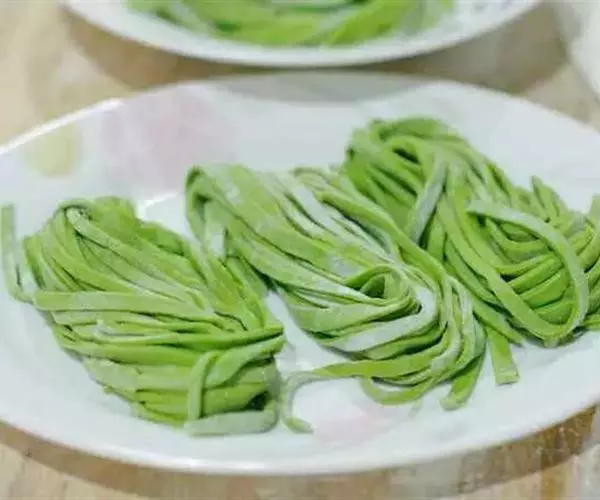 菠菜面是用菠菜、面制作的一道陕西地区的一种特色面食小吃。菠菜茎叶柔软滑嫩、味美色鲜,含有丰富维生素 C、胡萝卜素、蛋白质,以及铁、钙、磷等矿物质。除以鲜菜食用外,还可脱水制干和速冻。